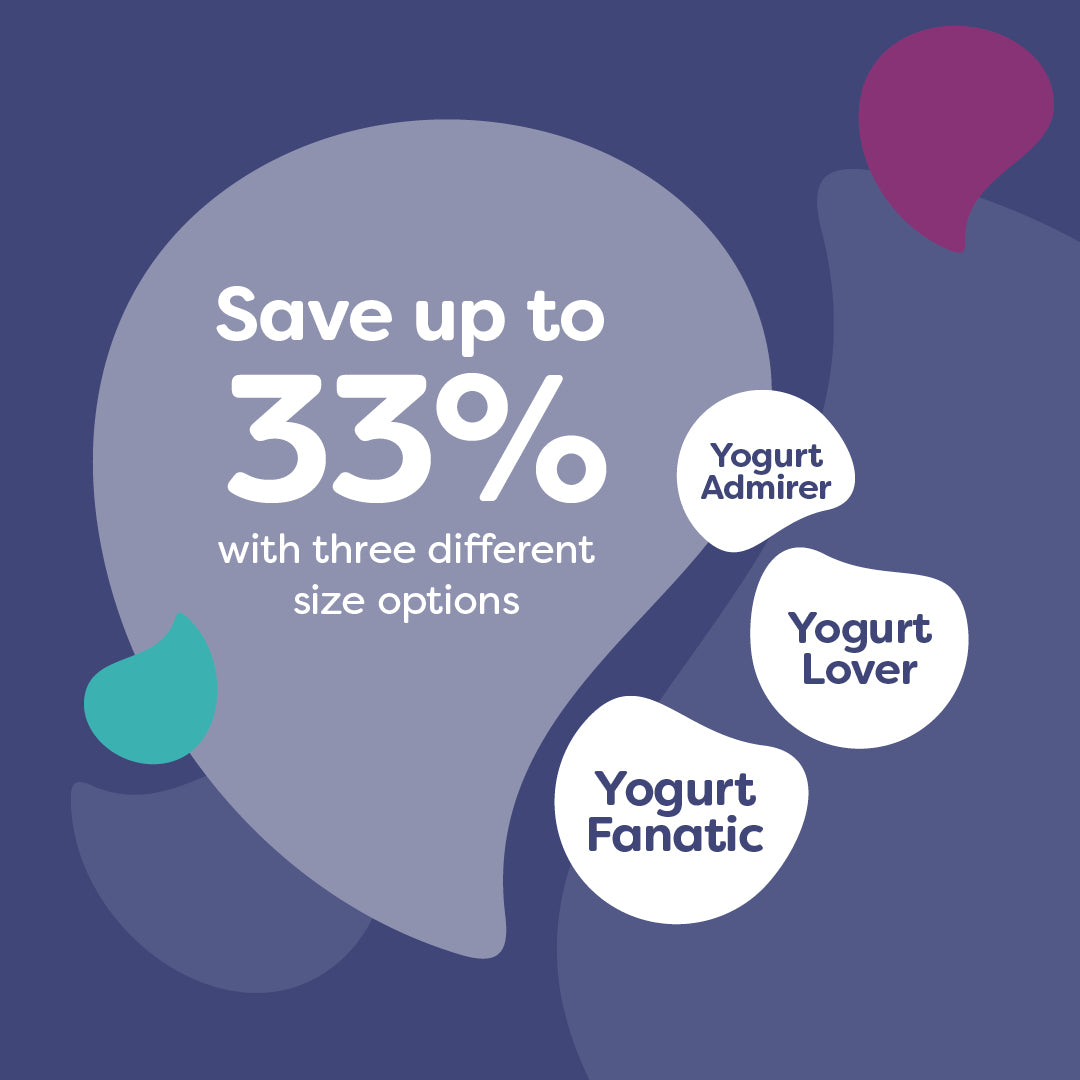 However profound your love for yogurt is, we have a subscription tailored for you. Choose from 8, 12 or 20 sachets!